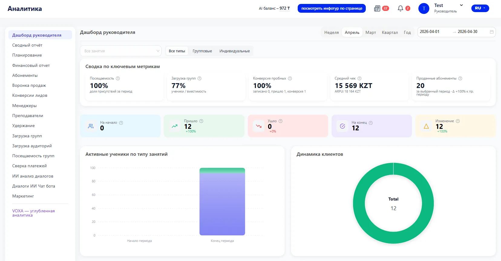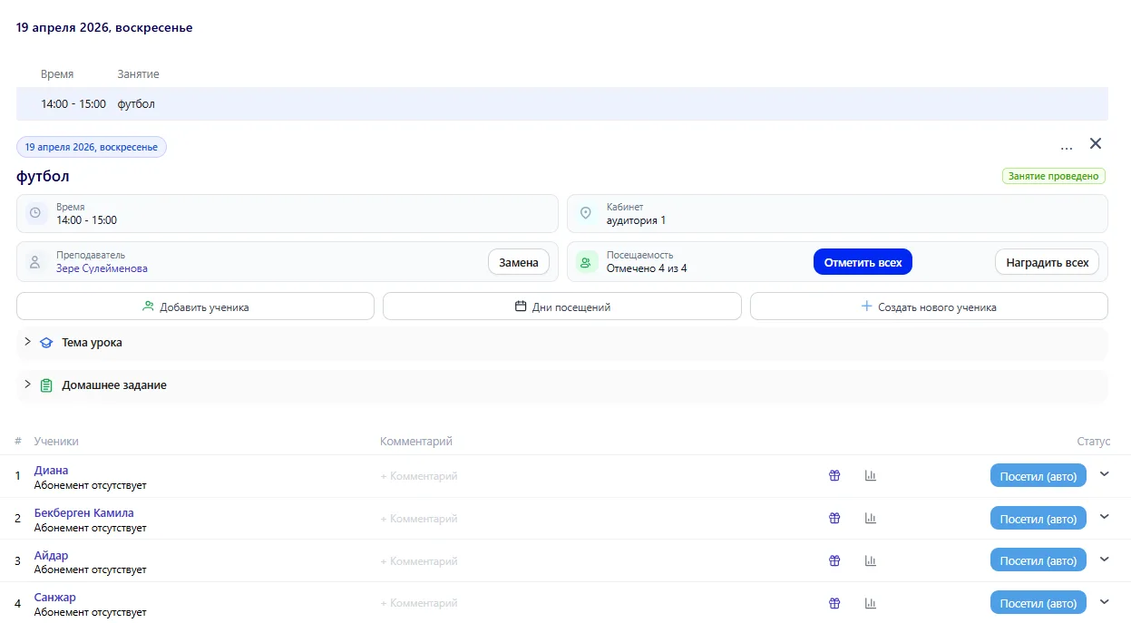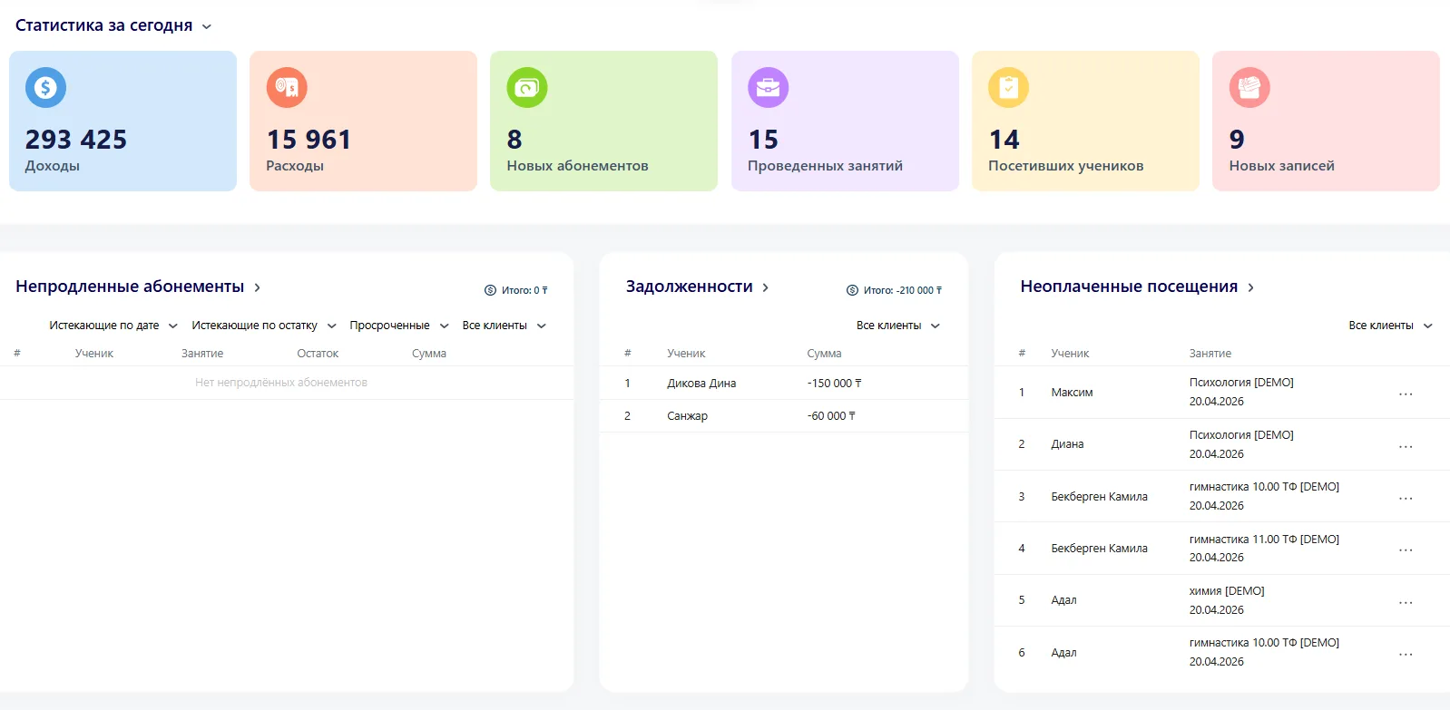 Контроль посещаемости, отслеживание оплат, автоматические напоминания родителям уже работают в Umai CRM. Система собирает информацию за администратора, и ему остаётся только действовать по готовым данным