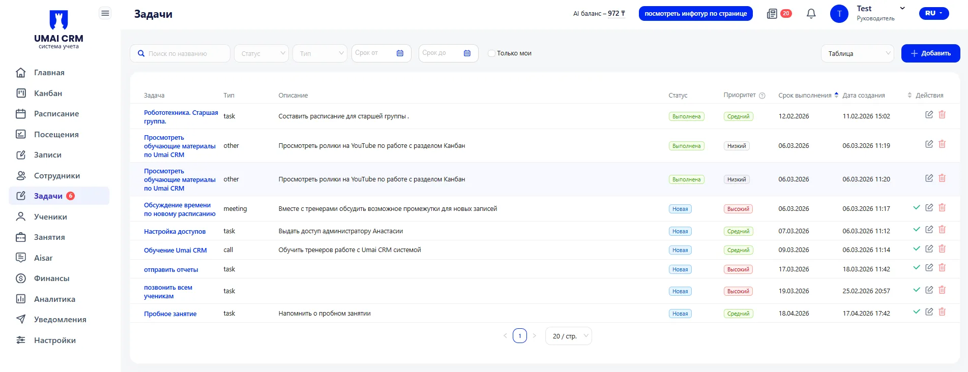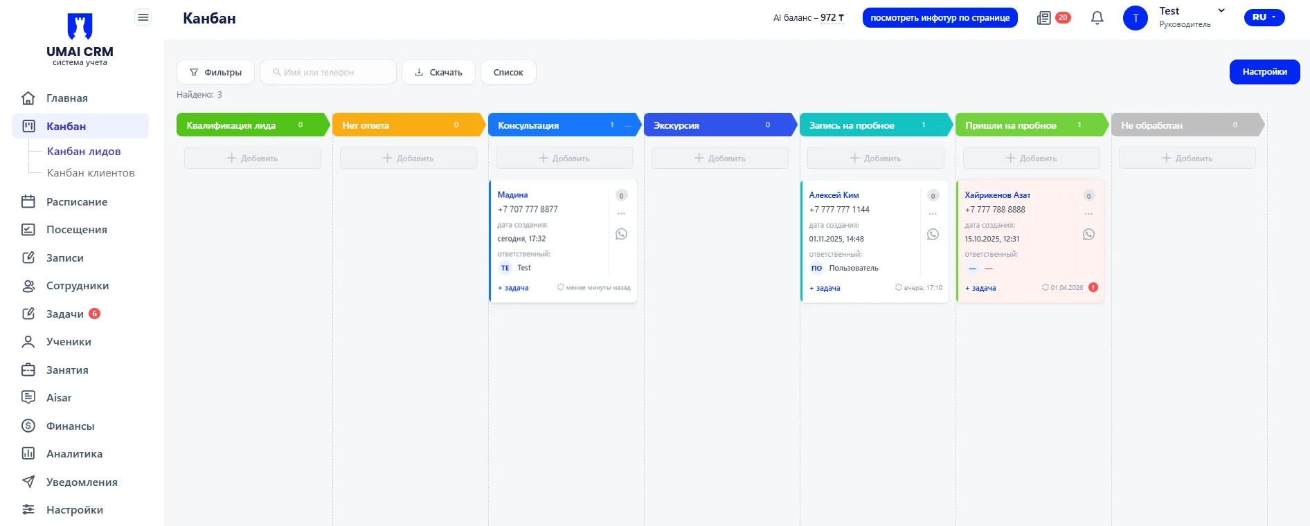 Всё, о чём мы говорили — воронка продаж, автонапоминания, отслеживание конверсии после пробных — уже работает в Umai CRM. Попробуйте бесплатно и посмотрите, сколько учеников вы теряете на этапе «мы подумаем».
