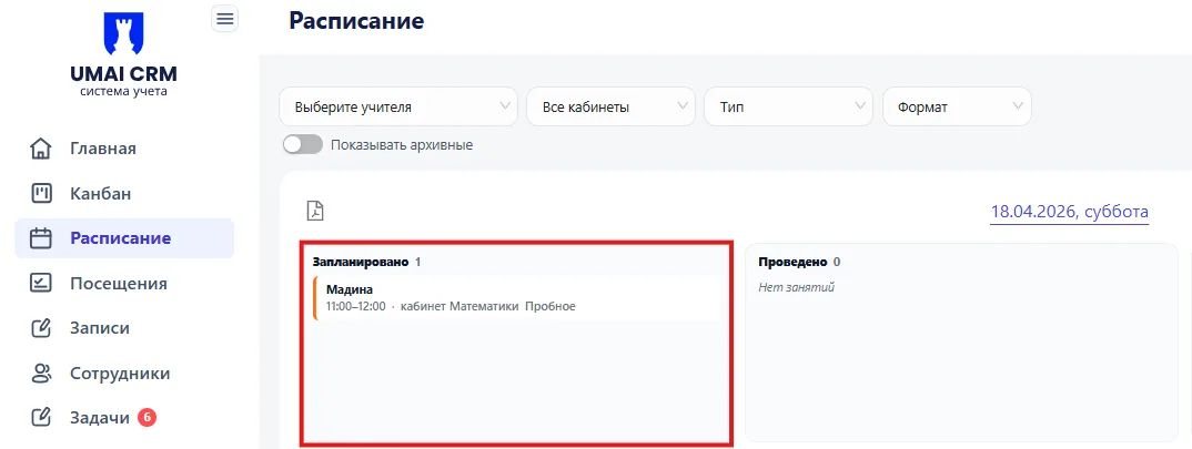 Всё, что описано выше, можно делать вручную. Записывать в тетрадку, ставить напоминания в телефоне, вести табличку в Excel. Проблема в том, что это работает, пока пробных занятий — 5-7 в неделю. Когда их 15-20, администратор начинает путать имена, забывать про обещанные звонки и отправлять шаблонные сообщения не тем людям.